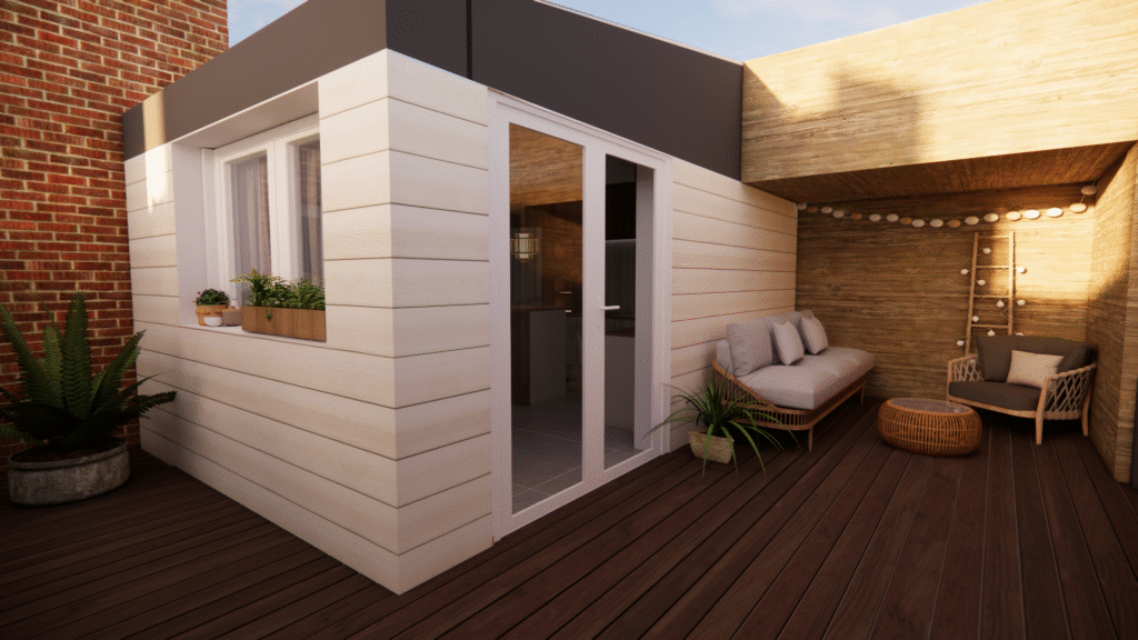 Projections 3D d’un rez-de-jardin à réinventer