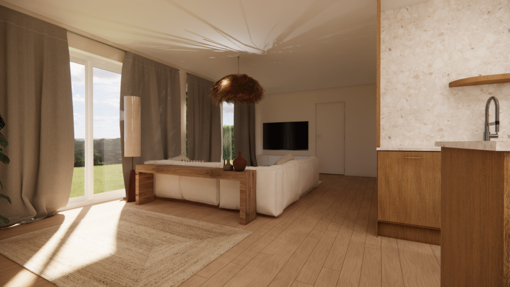 Pièce à Vivre Moderne : Aménagement 3D pour optimiser la vente