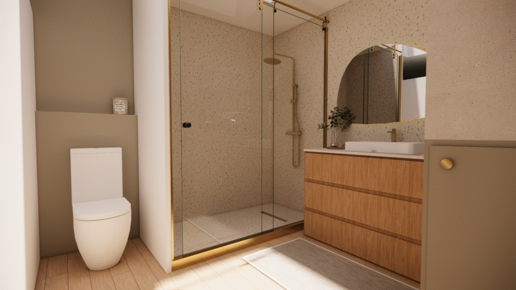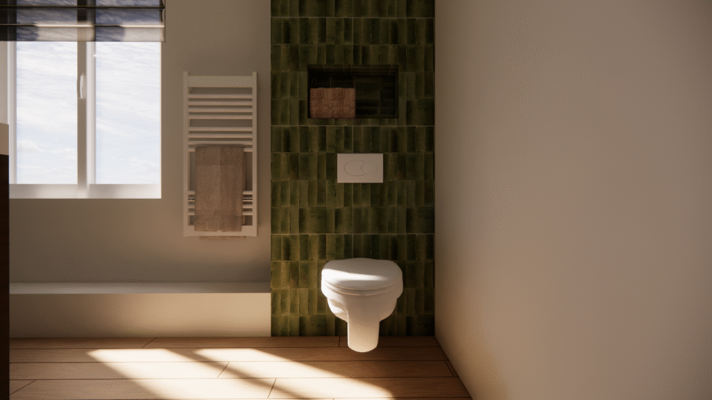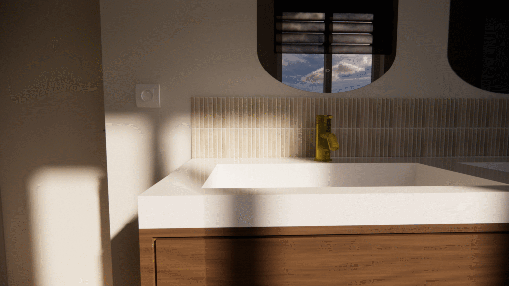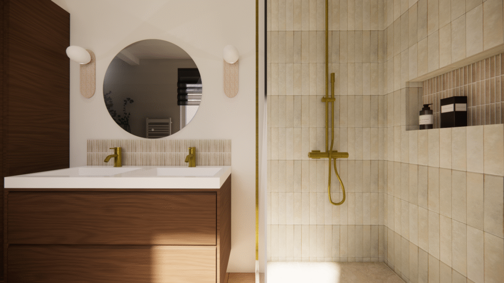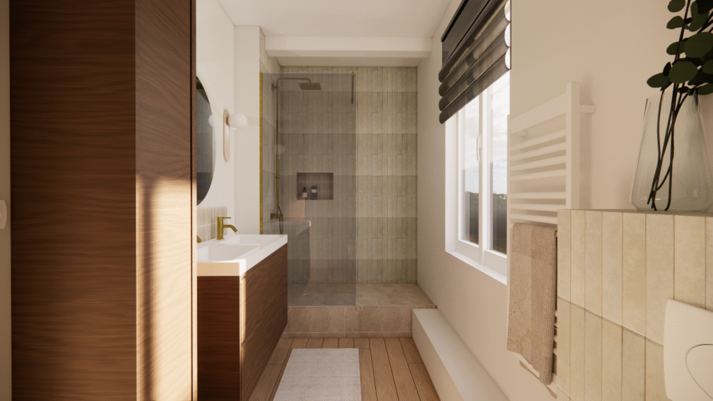 ​Pour ce projet de rénovation de salle de bain, les clients hésitaient entre deux matériaux et souhaitaient visualiser le rendu final avant de se lancer. J’ai réalisé une projection 3D réaliste pour les aider à se projeter, accompagnée d’une shopping list détaillée respectant leur budget. Résultat : des choix validés, des clients rassurés et des travaux lancés en toute sérénité.